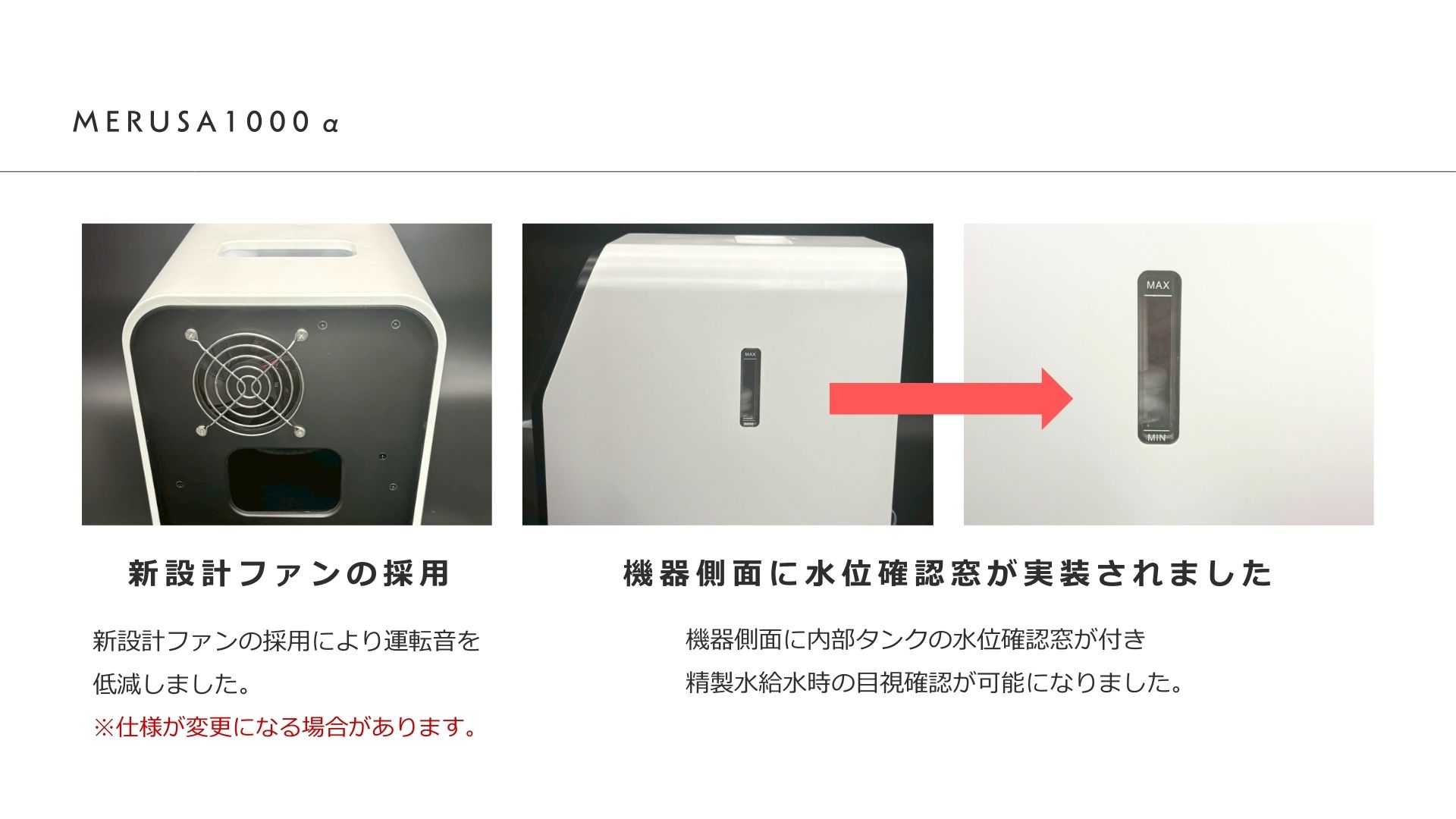 製品仕様改良に伴う後継モデル「MERUSA1000α」への移行について